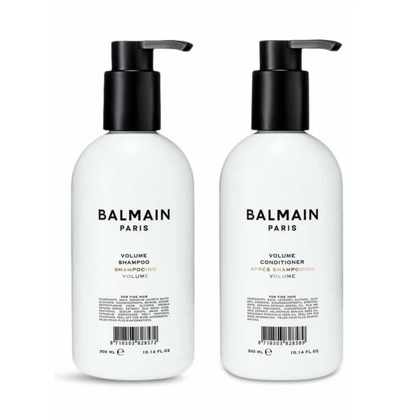 Achieve luscious, full-bodied hair with the Balmain Volume Duo Set. This set includes the Balmain Volume Shampoo and Conditioner, both formulated to gently cleanse and amplify fine hair, leaving it refreshed and nourished.