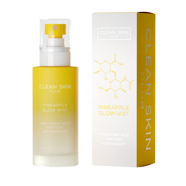 Clean Skin Club Pineapple Glow Clearing Mist is a luminous fusion of hydration and radiance for your skin. This invigorating mist is a concoction of hyaluronic acid for deep hydration, pineapple enzymes for a brightening effect, and peptides to fortify the skin's barrier.
