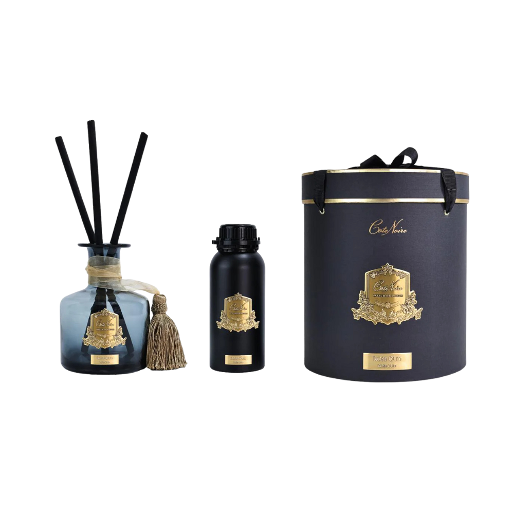Cote Noire diffuser will evenly release fragrance into the air for a period of up to two months using highly absorbent reeds that always retain their colour and shape.