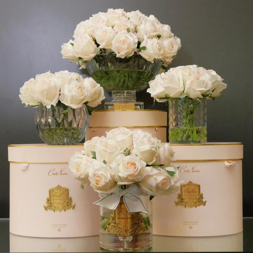 The special gel formula is hand poured, and each flower stem is cut to size and arranged by one of our passionate floral designers. Each is then perfumed by hand, individually checked & finally hand boxed.