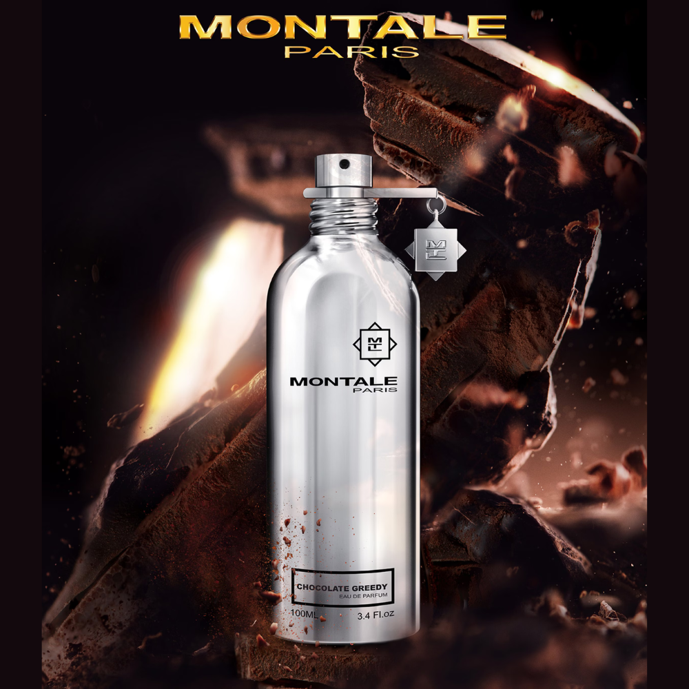 - Spritz Montale Chocolate Greedy Eau de Parfum on pulse points - wrists, neck, and ankles - for a fragrant aura that lasts all day long.