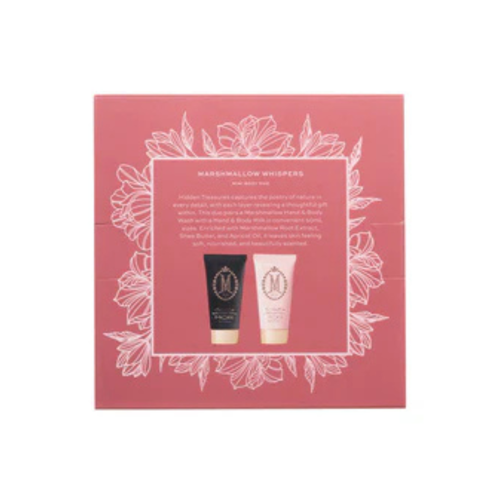 Hidden Treasures captures the poetry of nature in every detail, with each layer revealing a thoughtful gift within. This duo pairs a Marshmallow Hand & Body Wash with a Hand & Body Milk in convenient 50ml sizes. Enriched with Marshmallow Root Extract, Shea Butter, and Apricot Oil, it leaves skin feeling soft, nourished, and beautifully scented.
